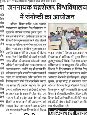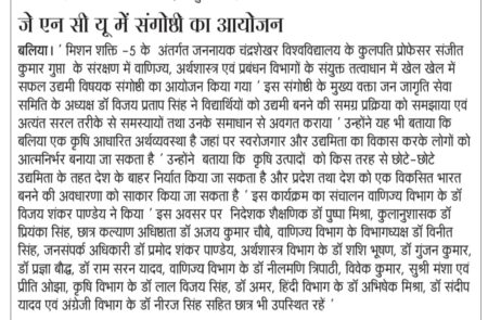 On 17 December 2025, a program organised by Jananayak Chandrashekhar University (JNCU), Ballia, under the Mission Shakti initiative, under the patronage of Vice-Chancellor Prof. Sanjeet Kumar Gupta, and jointly conducted by the Department of Commerce, Economics, and Management: